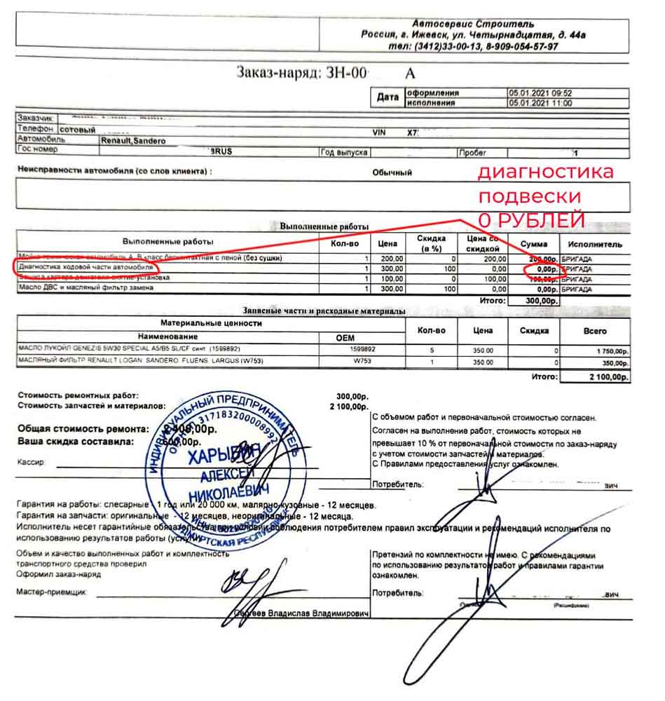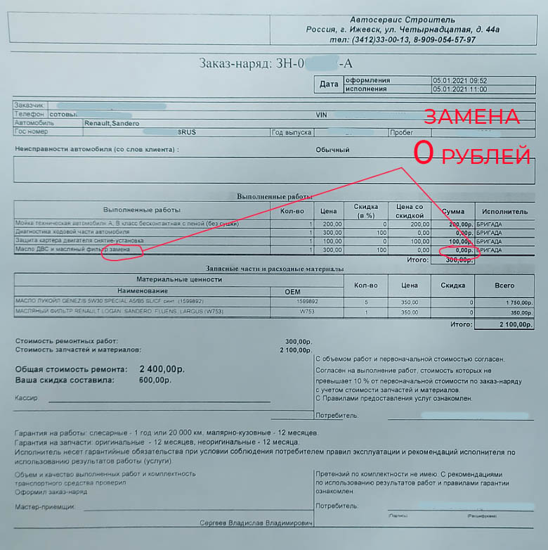 Свежий заказ-наряд на замену масла.